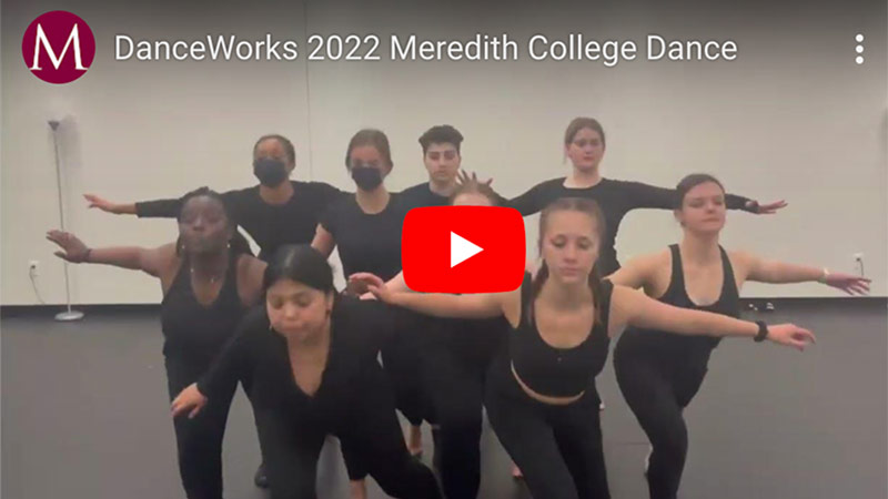 As part of Meredith’s dance program, you will be part of a collaborative environment for conducting artistic scholarship, developing technical, creative, and critical skills within a liberal arts curriculum, and exploring personal expression. The program not only offers a major in dance, but you can also pursue a K-12 Licensure to teach dance and a Professional Performance Certificate. All Meredith students may take dance classes and participate in our companies and performances.