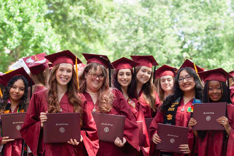 Meredith College held commencement ceremonies for the Class of 2025 on Saturday, May 10. The undergraduate ceremony was held at 10 a.m. in the courtyard of Johnson Hall, and the graduate ceremony followed at 2 p.m. in Jones Auditorium.